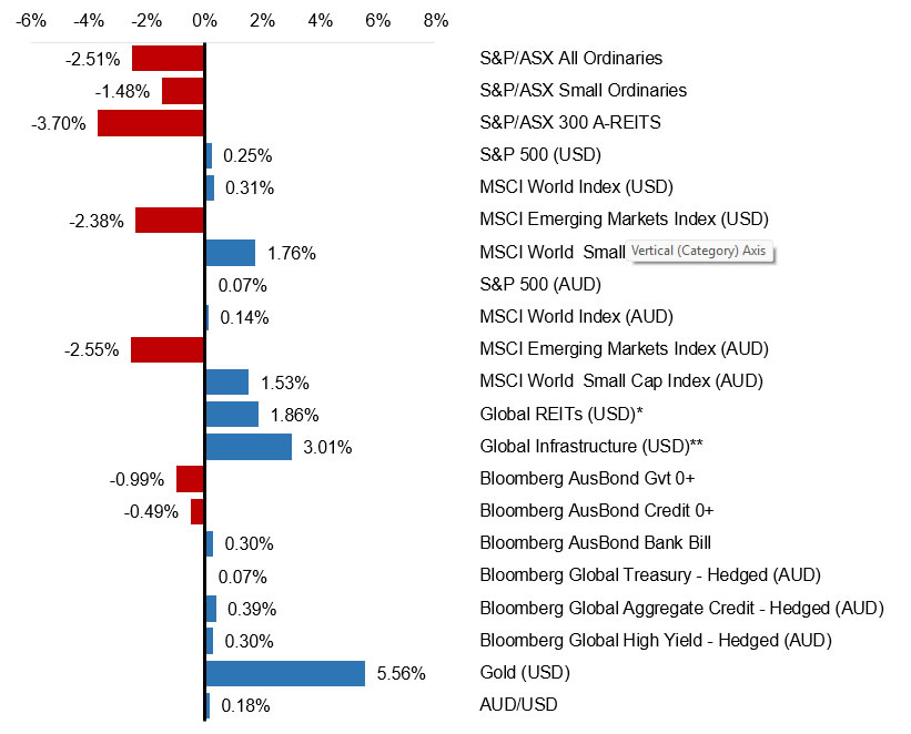In the US, performance was mixed with the S&P 500 Index edging up 0.25% (USD), the Nasdaq Composite fell -1.51% (USD), while the Russell 2000 Index gained 0.85% (USD).